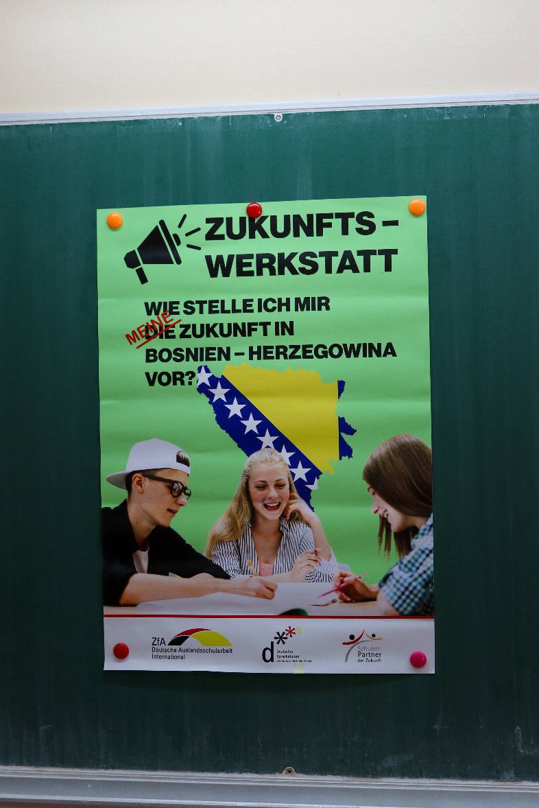 Danas, 26. studenoga u sklopu DSD programa učenici drugog i trećeg razreda naše gimnazije sudjelovali su u radionici „Zukunftswerkstatt“ – „Radionica budućnosti“, posvećenoj temi „Kako zamišljam svoju budućnost u Bosni i Hercegovini?“.